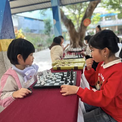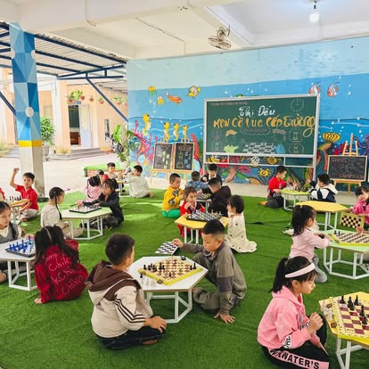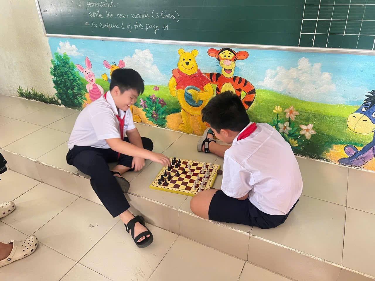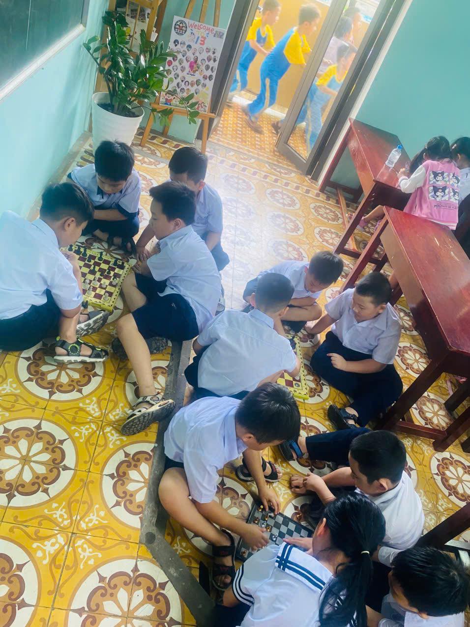 + Với cờ vua, chuẩn bị các bộ cờ để học sinh được chơi thử, giáo viên hướng dẫn các nước đi cơ bản, luật chơi, và cho các em thi đấu giao hữu trong giờ ra chơi.